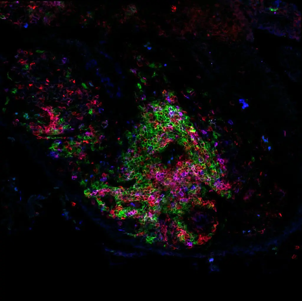 T- and B- cells, like the ones pictured here, are involved in the production of harmful autoantibodies in patients with autoimmune disease. Photo: NIH